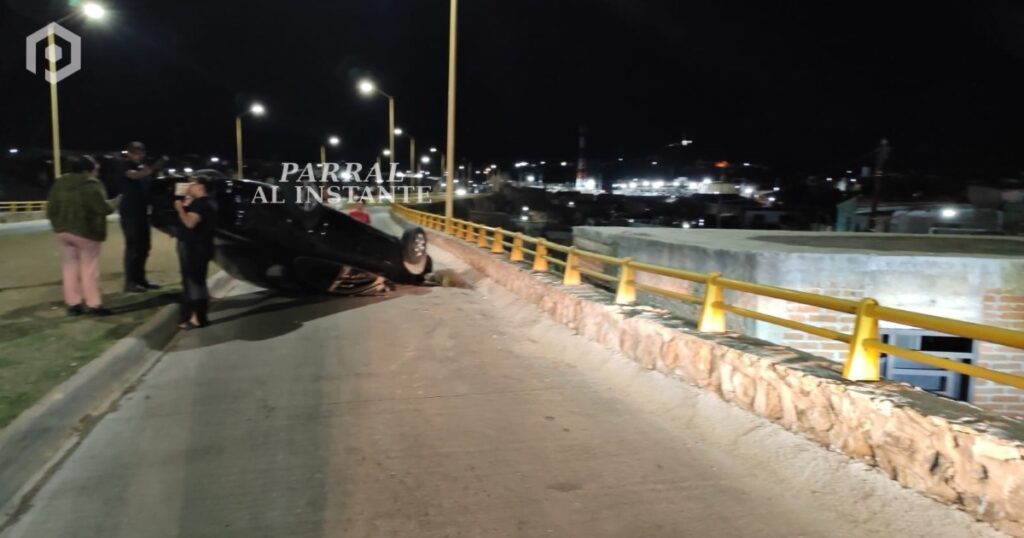 Un vehículo particular volcó la noche del martes sobre la Vialidad Ferrocarril, a la altura de la Unidad Deportiva Vanessa Zambotti, dejando como saldo únicamente daños materiales y una breve afectación a la circulación.